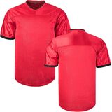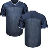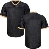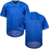 Step onto the field or show your team spirit in this classic athletic mesh football jersey. Featuring a timeless V-neck design and distinctive striped sleeves, this jersey combines style with functionality. The breathable mesh construction keeps you cool during intense practice sessions or casual wear. Available in vibrant royal blue and bold red options, each jersey showcases eye-catching white sleeve stripes that add a traditional varsity look. The durable polyester mesh material offers both comfort and durability, while the loose fit allows for unrestricted movement during plays or practice drills. The sleeves are cut at the perfect length for maximum mobility, and the V-neck provides comfortable ventilation. Perfect for practice sessions, recreational leagues, or showing support from the stands, this versatile jersey can be customized with your team numbers and logos. The lightweight fabric maintains its shape and color through multiple washes, making it a reliable addition to your athletic wardrobe.