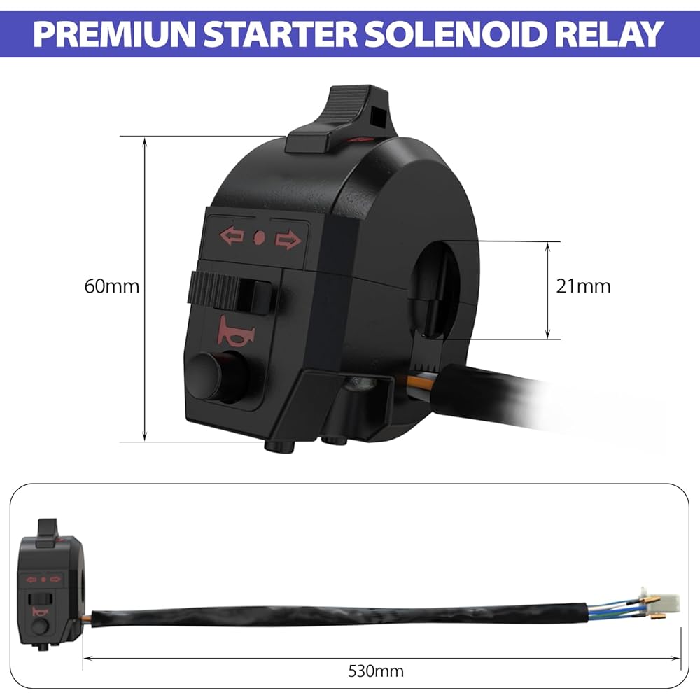 • 【Multi-Function Switch】Features turn signal, horn, and hi/lo beam switches, fit all 7/8" handlebars and 125cc motorcycles(not compatible with Harley, Sports Cars, etc).