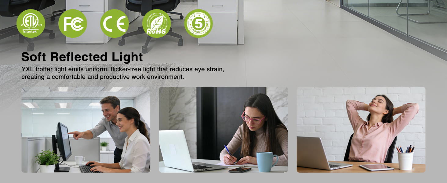 🔥 Selectable CCT - The YXL LED center basket troffer light delivers instant bright light with various color temperature options (3000K/3500K/4000K/5000K/6500K) to achieve optimal focus and productivity. During installation, use the slide switch on the back of the panel to select your preferred color temperature.