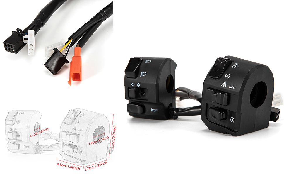 【Left & Right Side】This motorcycle handlebar switch control includes the left and right sides and comes with 2 cable wires. Made up of high-quality ABS plastic and rubber material, durable and waterproof.