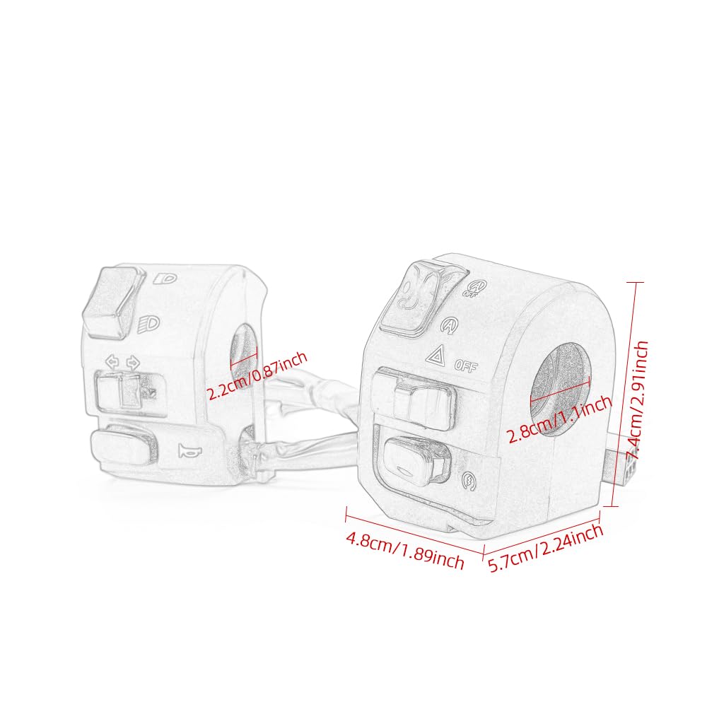 【Universal 7/8'' 22mm】This motorcycle handlebar on-off switch is a universal design to fits most motorcycle handlebar with 7/8'' 22mm diameter. Kindly check the size of your handlebar before purchasing.