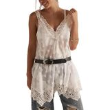 Materials: Women sleeveless sheer lace trim top made of the high quality polyester, soft and elastic, very close to the skin, breathable , lightweight and durable, comfortable hand feelings, sexy v neck tank top, must-have for summer
