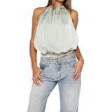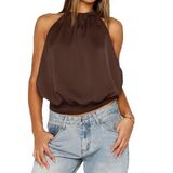 Women's Satin Halter Tank Tops Sleeveless Backless Summer Going Out Tops