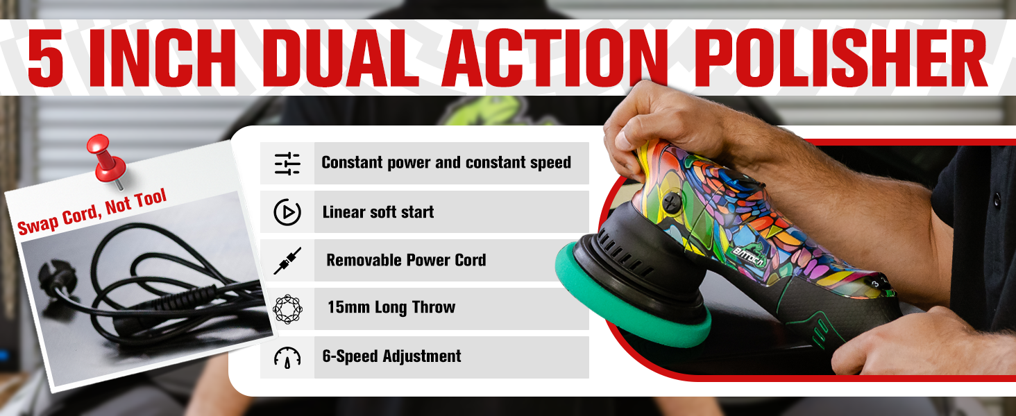 ONE-OF-A-KIND CUSTOM FINISH: Every polisher features an exclusively crafted pattern with subtle natural variations — no two machines are ever identical. Protected by a durable clear coat that resists scratches, peeling & fading through years of daily detailing work. The kind of polisher that turns heads in any garage and performs to match