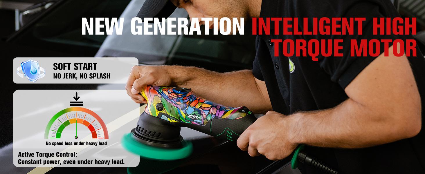 1000W HIGH-TORQUE MOTOR & 15MM long-throw: Engineered for professional results, this machine features a 1000W high-torque motor combined with a 15mm long-throw orbit. It maintains constant speed under heavy pressure, preventing stalling on deep scratches. Equipped with a 6-speed control dial (2500-5500 OPM) and Soft Start technology, it delivers consistent correction power for a swirl-free, showroom shine