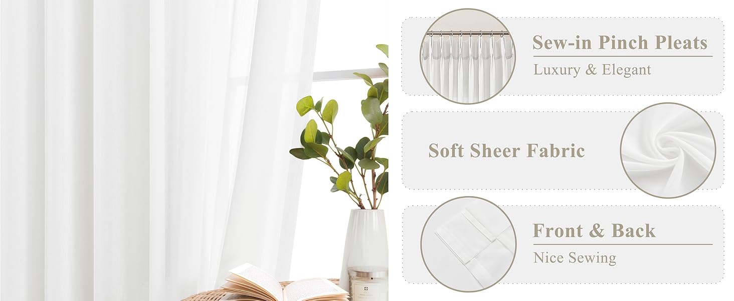 Pinch Pleated Sheer: It is crafted with precision and care, ensuring a high-quality fabric that is both soft and durable. The pleats add a touch of elegance and sophistication, making it stand out from the ordinary.