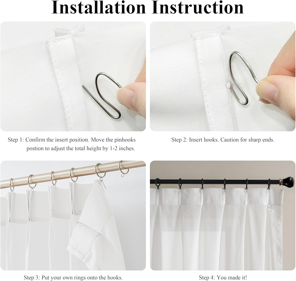 Multiple Hanging Options: Whether you prefer to drape it with back tab, hooks, clips, track system, or any other creative way, it adapts perfectly to your desired style. It gives you the freedom to transform your space.