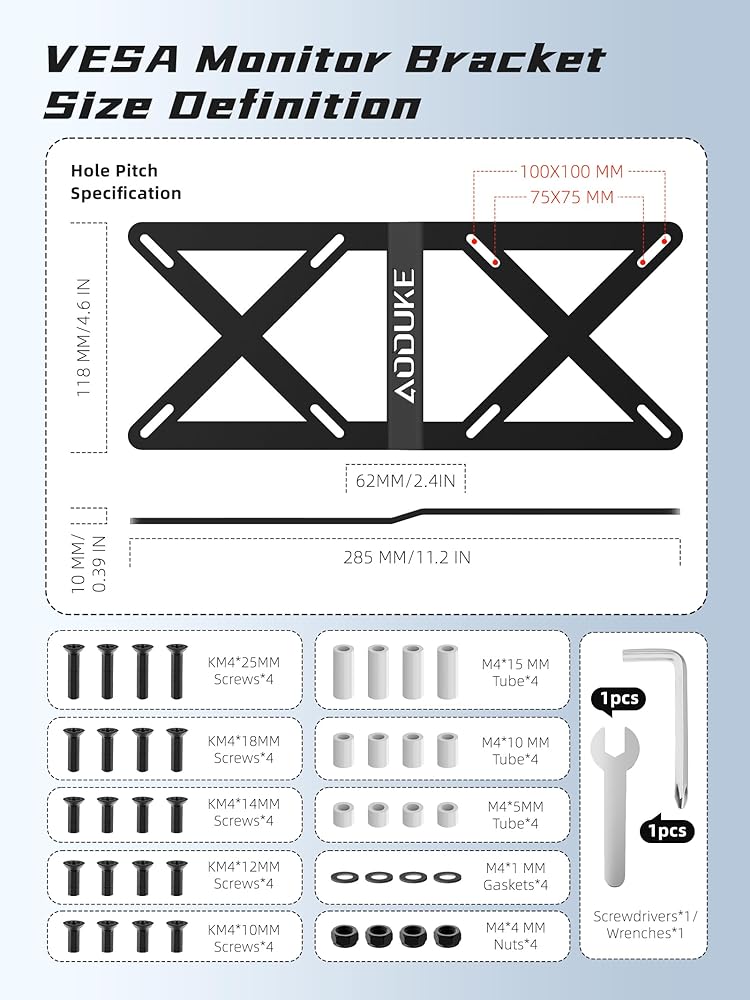 2.Universal Compatibility – Fits any monitor or arm with 75x75mm or 100x100mm VESA patterns. Works even if your monitor is already mounted on an arm or stand.