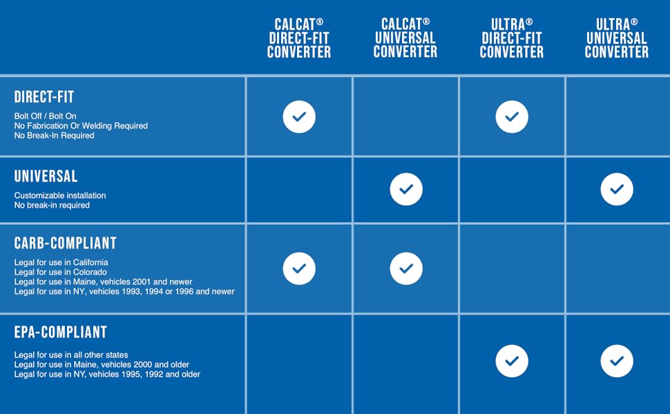 EPA COMPLIANT -- For use on OBDII vehicles, 1996 and newer. Consult your state's aftermarket converter regulations for details.
