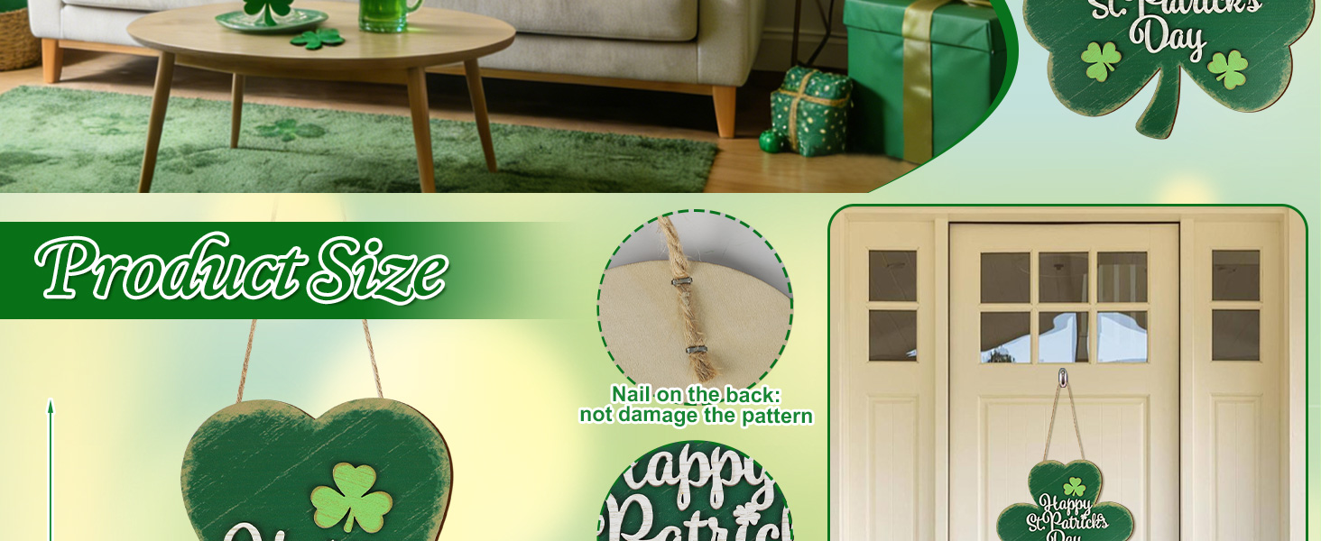 [Premium Material] The entire St. Patricks door decoration is crafted from high-quality, 5mm-thick wood and finished with eco-friendly, non-toxic paint. This premium material guarantees vibrant colors, a smooth finish, and long-lasting durability.