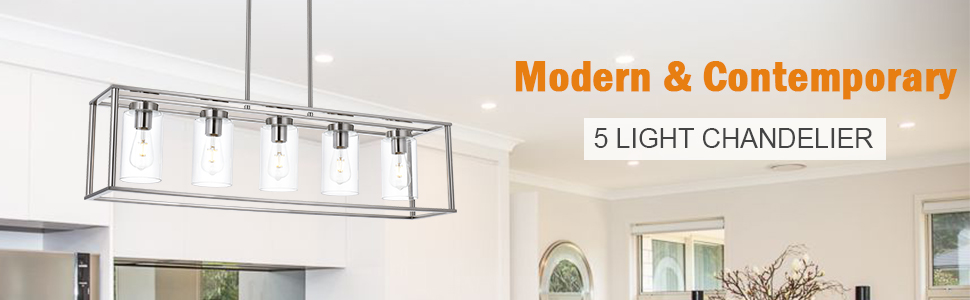 Contemporary Design: This simple linear island pendant lighting with clear glass shade, unique designed to illuminate the heart of your kitchen, dining room or farm styled places