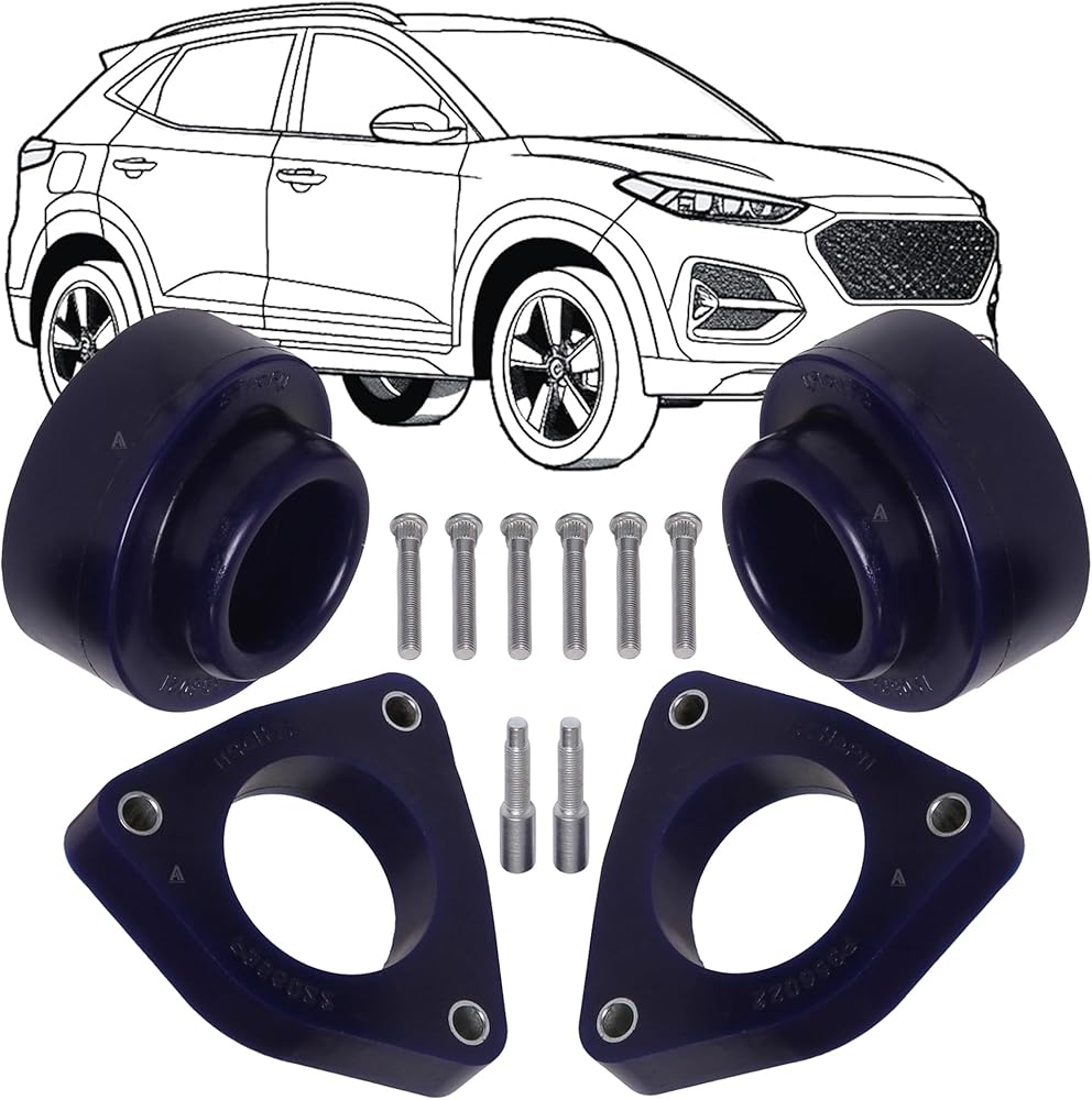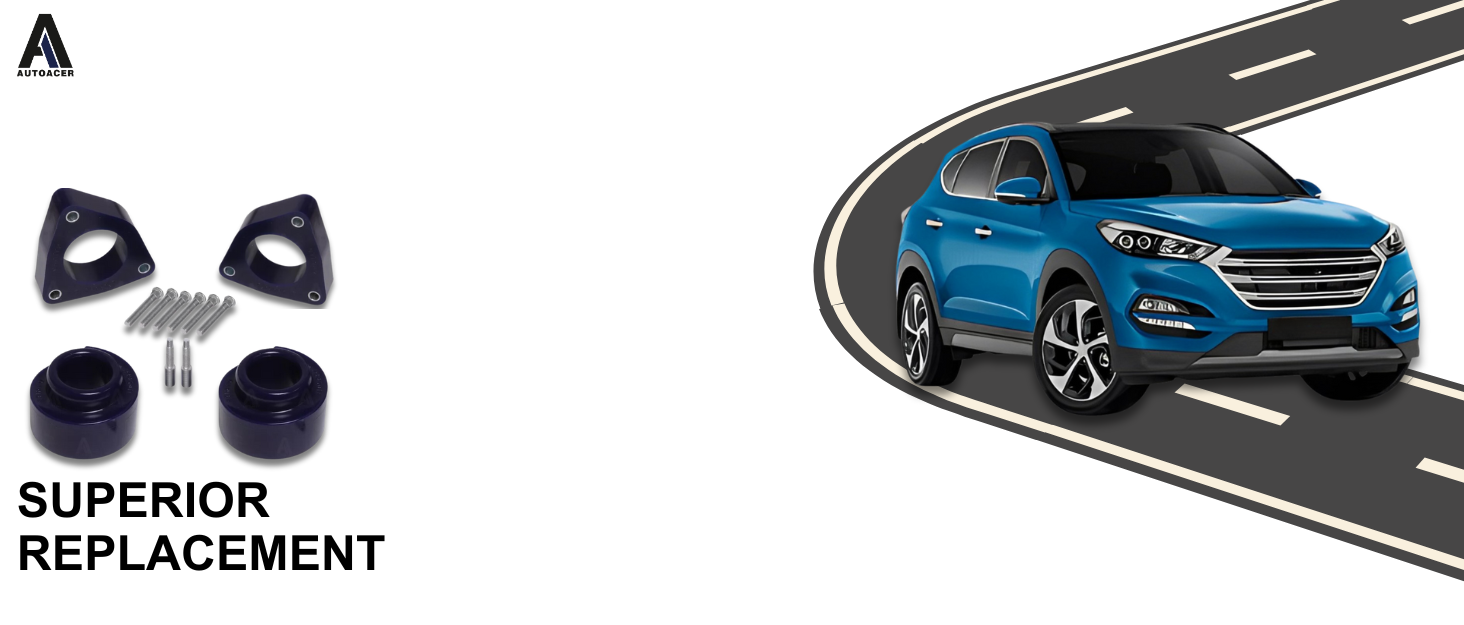 "The AUTOACER Complete Lift Kit is a specialized enhancement tailored for Hyundai Tucson vehicles. It comprises four vital components: front and rear strut coil spring spacers forged from durable Polyurethane (PU), delivering a lift of 40mm or roughly 1.6 inches, 2 rear shock extender bolts and 6 accompanying bolts. This comprehensive kit suits two specific Hyundai Tucson editions: the III generation (D3/D7) spanning 2015 to 2021, and the IV generation (NX4/GT/HE) from 2020 onwards. Included alongside the spacers are six bolts and two rear shock extenders. These integral parts are meticulously engineered for seamless compatibility and optimized performance. By raising both the front and rear sections of the vehicle, the kit achieves heightened ground clearance, a key asset for conquering off-road challenges, and a commanding road presence. The Polyurethane (PU) material, with its inherent robustness and endurance, ensures prolonged service life while resisting the rigors of wear and tear. This resilient material is adept at withstanding diverse environmental conditions and the demands of varying terrains. The chief benefits of this lift kit are twofold: an augmented ground clearance, which empowers smoother traversal over uneven landscapes, and an aesthetically enhanced profile that exudes a rugged off-road allure."