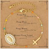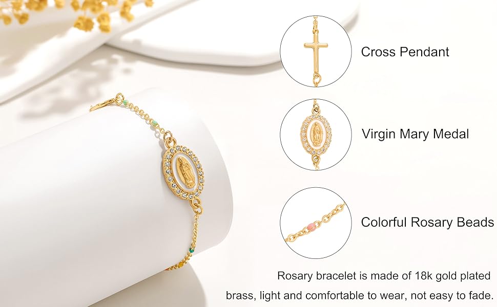 This rosary bracelet combines a Virgin Mary medal and a cross pendant with simulated pearl beads, unique design and profound meaning.
