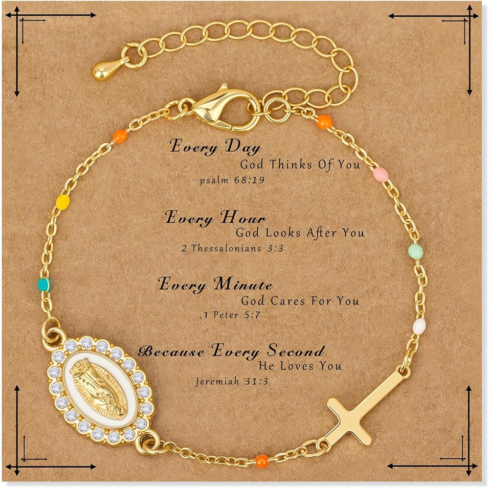 Crafted from 18K gold plated brass, this catholic bracelet is not only stylish but also durable. It adds a touch of grace to any outfit—from casual wear to elegant dresses. Wear it alone as a symbol of faith or layer it with other chains for a trendy look.
