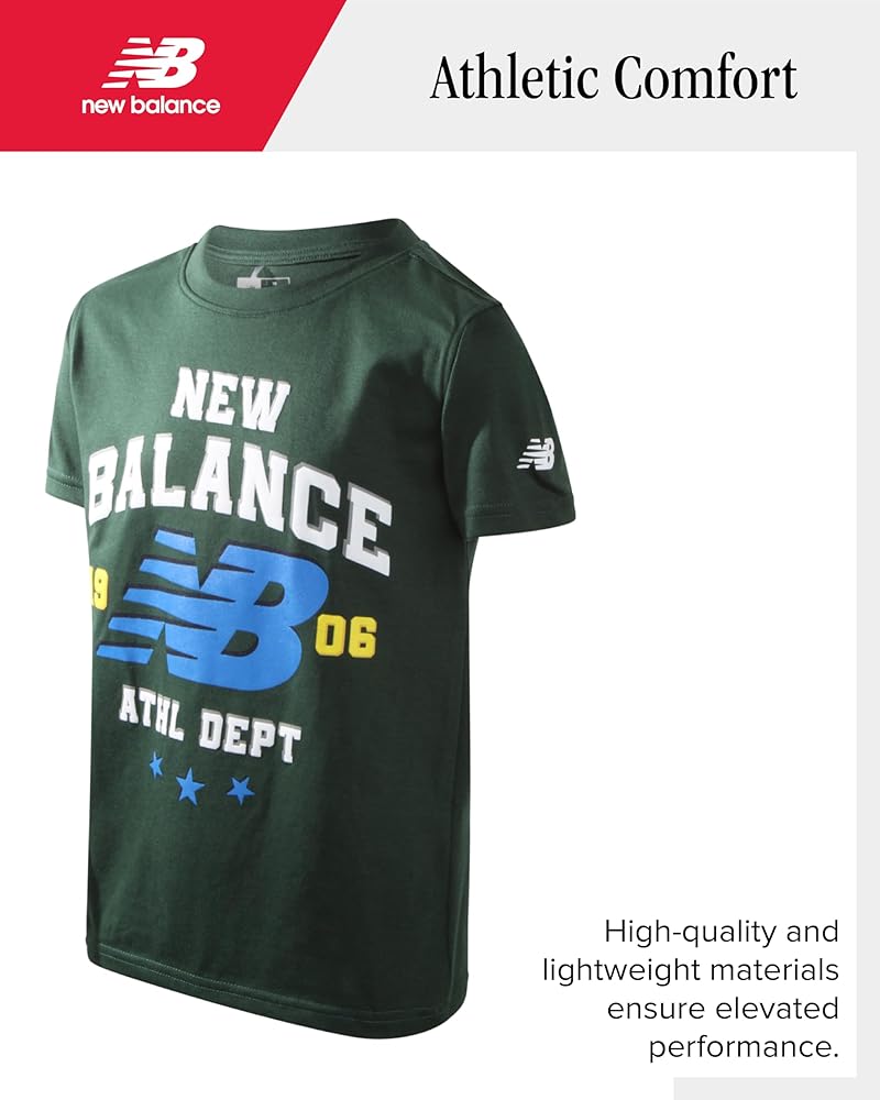 New Balance Boys' Active Jogger Set - Short Sleeve Performance T-Shirt and Sweatpants Set is popular with active young boys. Featuring a lightweight short sleeve T-shirt and comfy sweatpants, our two-piece active jogger set will treat your little guy to maximum comfort every time he wears this active outfit. Our boys' performance jogger set is great for all outdoor sports, lounging at home, and hanging out with friends. Send your son back to school in style with a fashionable jogging set. Comfortable The breathable and stretchy material will keep him comfy all day long. Warm and Cozy The super soft and warm fleece material of this boys' joggers keeps warmth inside, making it perfect for outdoor activities on cooler days. Simple Design Elastic waistband, cuffs, and a crewneck finish of the T-shirt provide a snug fit and maximum comfort while playing outside. Perfect Gift Our super comfy set for boys features multiple colorful options and will make an awesome birthday present. Easy to Clean Simply machine wash and tumble dry and this activewear is ready to be worn again; Please Reference the Variations for all Available Sizes and Colors. New Balance Offers Premium Clothing at Affordable Prices because we value every customer that visits our listings! Stop by Our Storefront to See the Rest of Our Great Deals; we're confident you're going to find items that anyone who needs a gift will really appreciate!