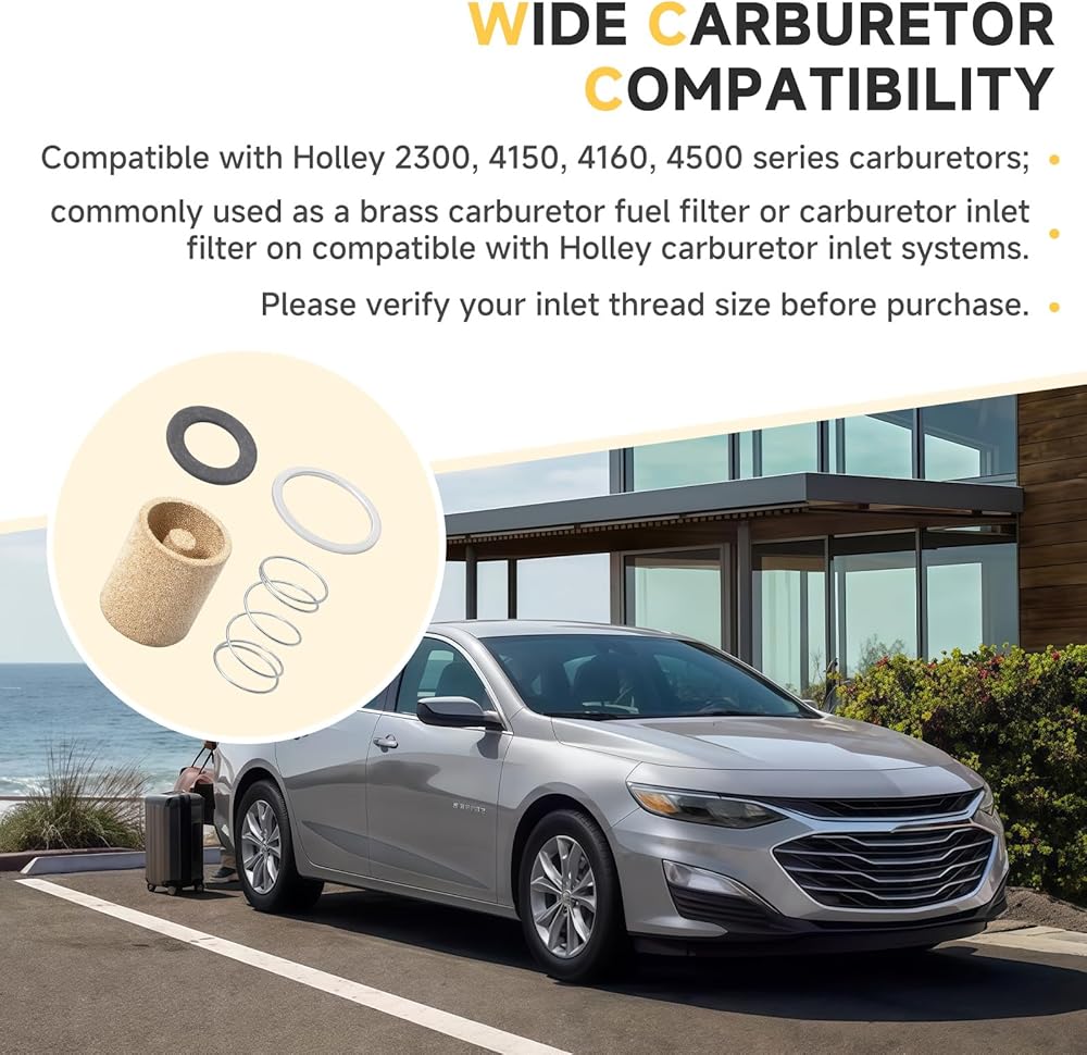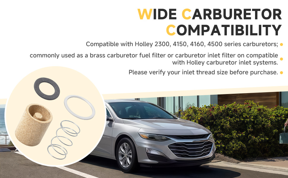 Wide Carburetor Compatibility:Compatible with Holley 2300, 4150, 4160, 4500 series carburetors; commonly used as a brass carburetor fuel filter or carburetor inlet filter on compatible with Holley carburetor inlet systems.Please verify your inlet thread size before purchase.