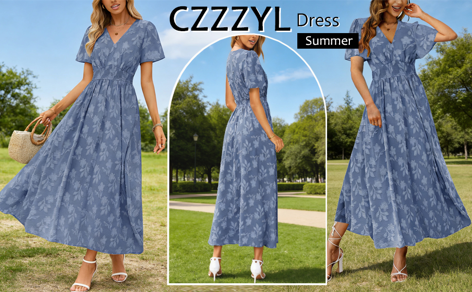 Match: This fancy maxi dress highlights the cuteness and femininity, and subtly blends graceful design with casual style; pair it with boots or heels and statement accessories like jewelry for semi formal occasions or daily wear.