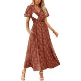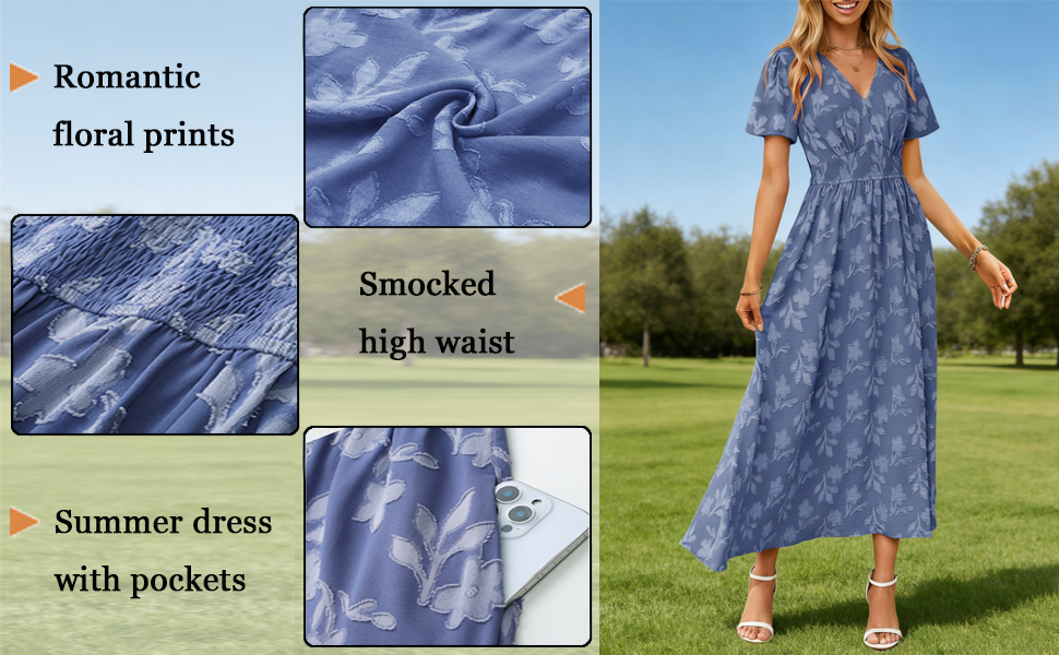 Feature:high waisted A-line,premium 3D Floral print,V-Neck,empire waist elastic smocked.