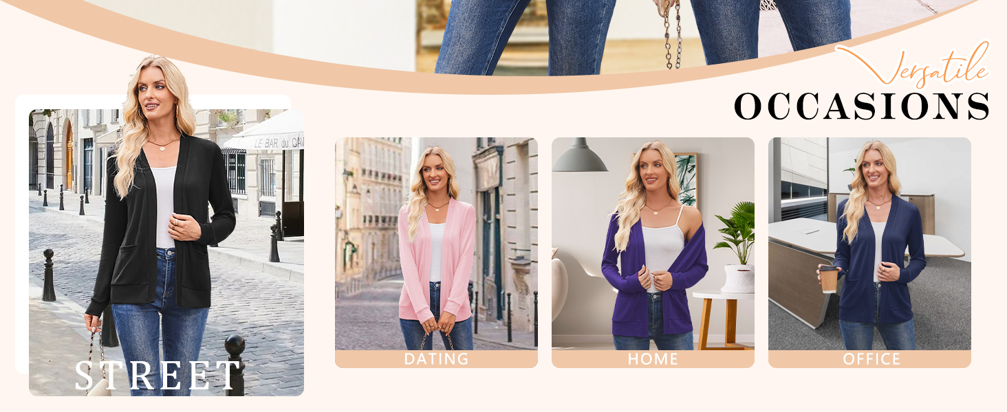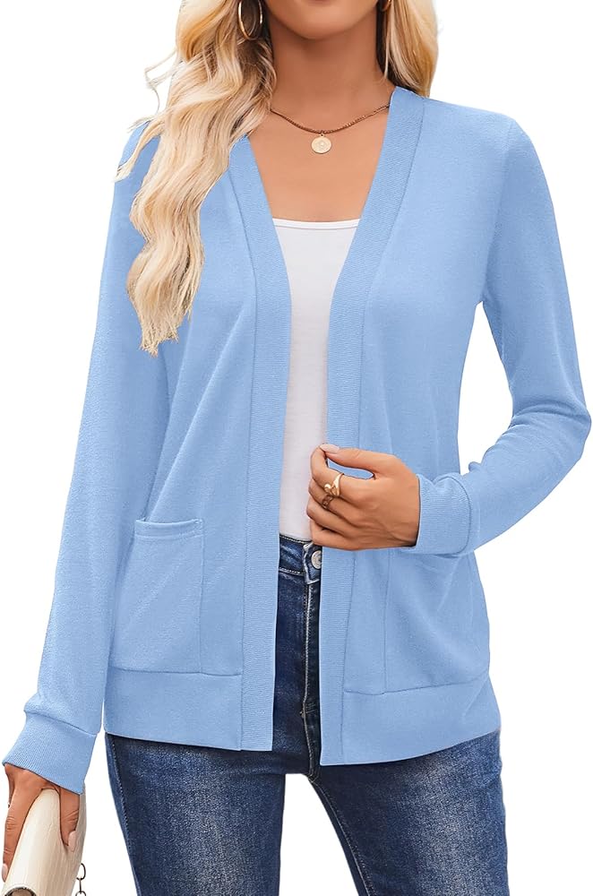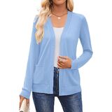 Features: The basic cardigan sweater designed with a classic v neck, long sleeves, solid colors, loose fit and cover hip length, Open front Cardigan sweaters for women with two front pockets, Lightweight cardigans for women have the unique ribbed detailing on the sleeves and edges, A charming and fashionable light fall sweaters coat for women