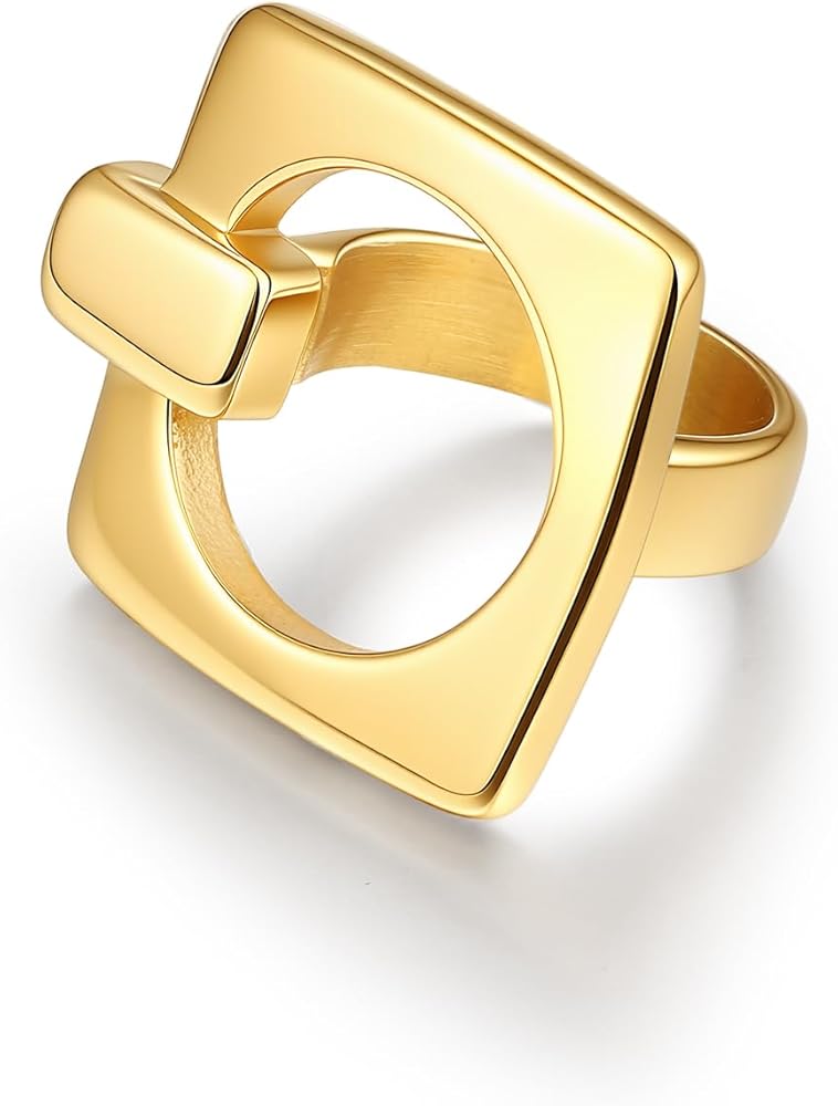 Comfortable Material: Square Hollow statement ring for women, made of stainless steel, maintain long-lasting brilliance, waterproof and tarnish resistant. Comfort to wear, Stylish and Elegant