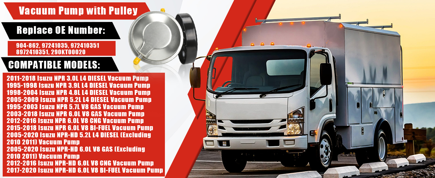 【Perfect Fit】Vacuum Pump fits for 1995 Isuzu NPR V8 TBI (L05);For 1996-2003 Isuzu NPR V8 MPI (L31); For 2003 Isuzu NPR V8 MPI (LQ4); For 2004-2007 Isuzu NPR GAS V8 (LQ4); For 2004-2007 Isuzu NPR-HD GAS V8 (LQ4); For 2008-2009 Isuzu NPR GAS V8 (LY6); For 2012-2019 Isuzu NPR GAS V8 (L96);For 2012-2019 Isuzu NPR-HD GAS V8 (L96)