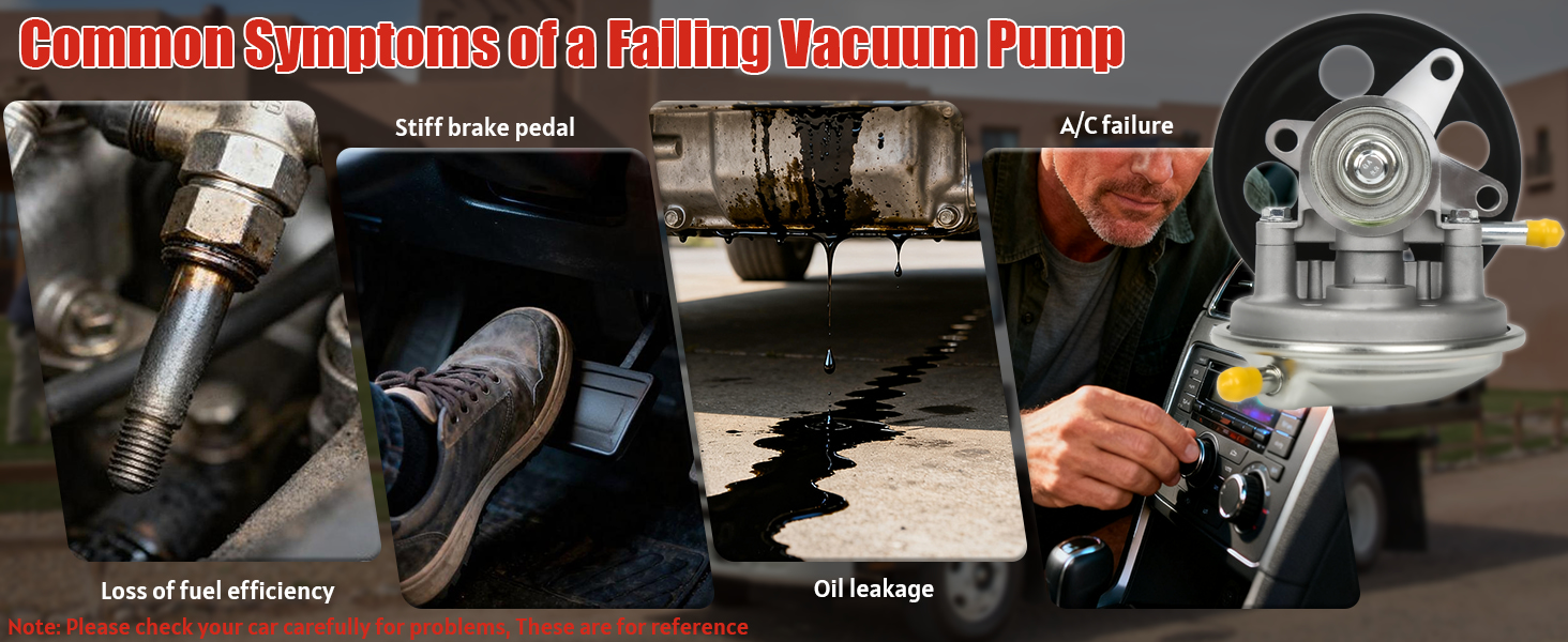 【Key Signs for Replacement】Watch for symptoms like reduced braking force or a stiff brake pedal, engine hesitation or rough idle, unusual pump noises, oil seepage near the pump or hoses, or if the pump is past its service interval or shows clear wear