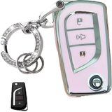 This car key fob cover compatible with Toyota Fortuner tundra Camry RAV4 Highlander Corolla 4 Buttons fold smart key