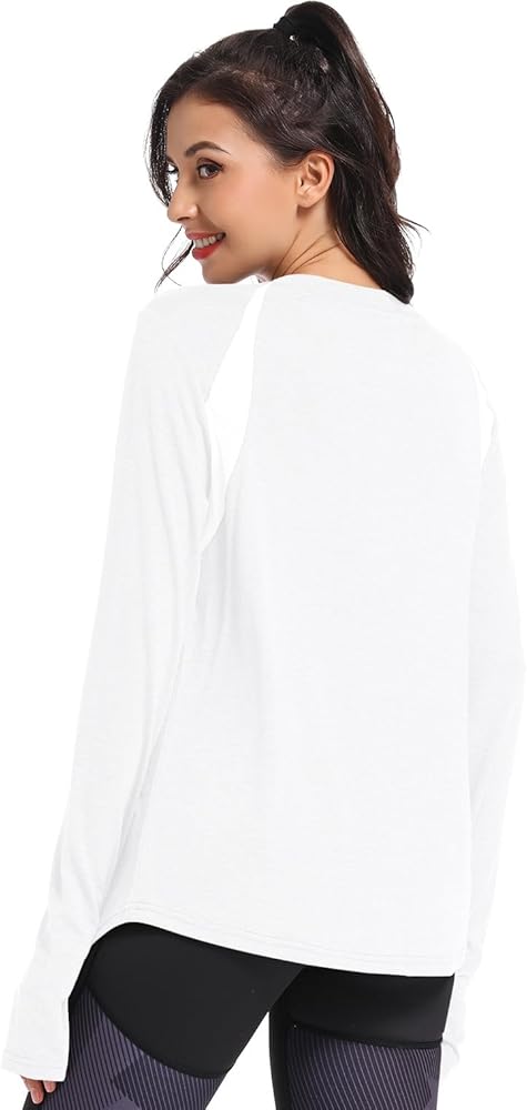 Breathable mesh design around the arm and long sleeves workout shirt with thumb hole