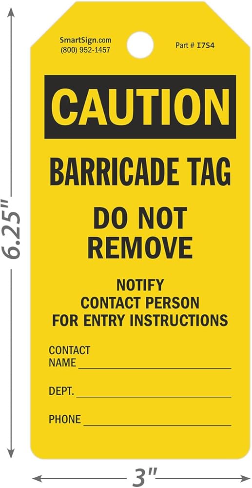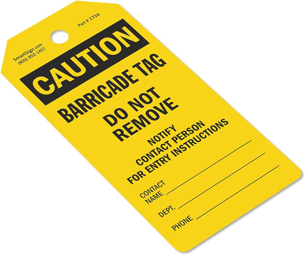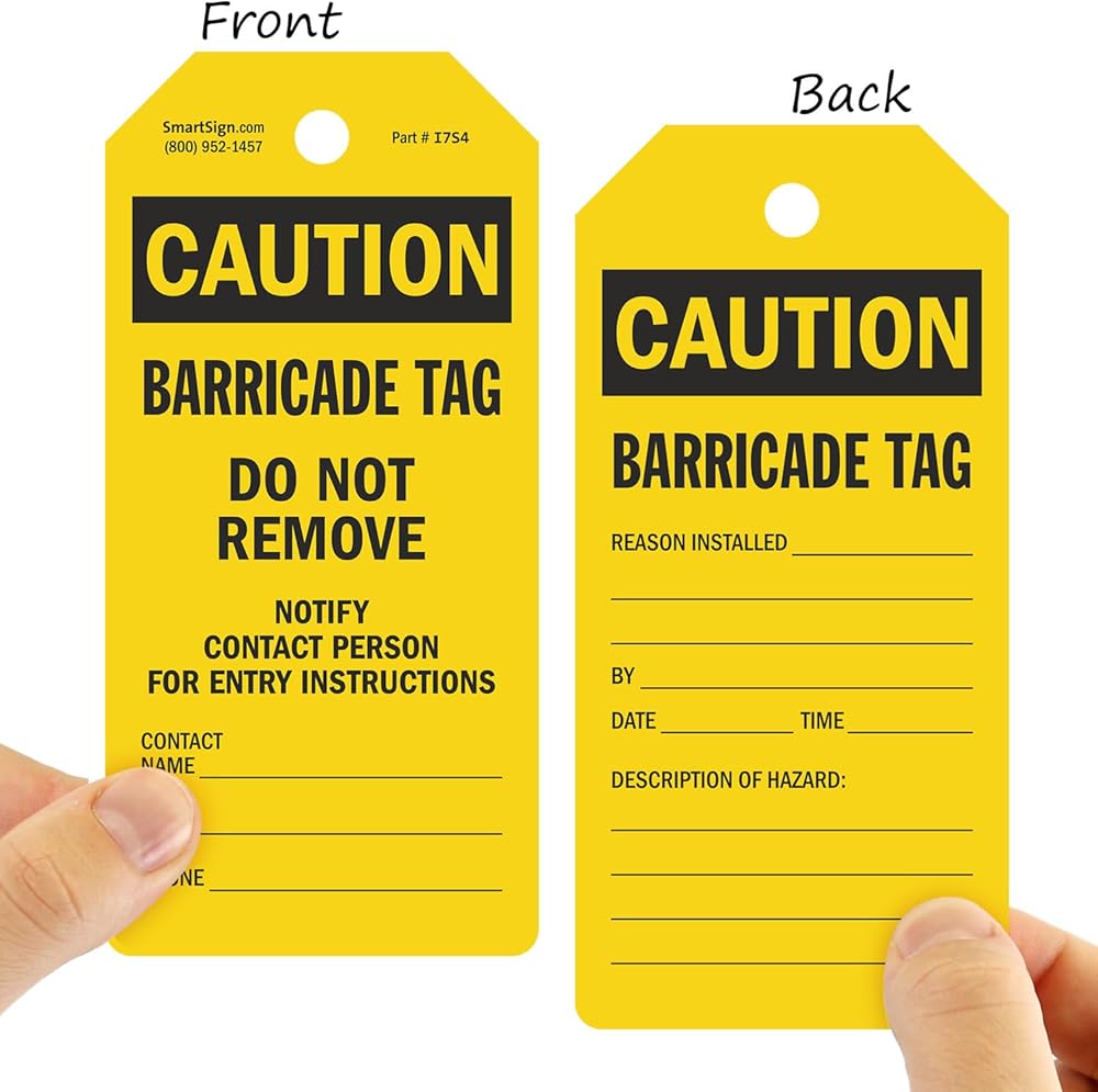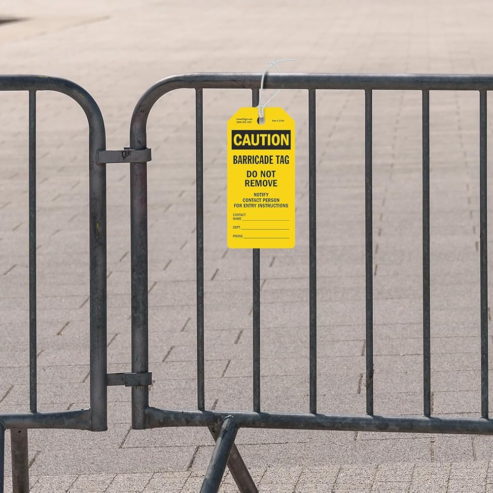 DURABLE & WATERPROOF. Barricade Tags are made from 10 mil thick plastic. These reusable and waterproof tags can be used indoors or outdoors. You can rely on these tags, delivering good performance, ideal for repeated use.