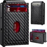 Wallet for Men | RFID Blocking Magsafe Pop Up Metal Card Holder | with 2 ID Windows and Cash Slot | Hold 12 -15 Cards | Slim Compact Bifold Smart Wallet | Magnetic Closure (Black Carbon Fiber)