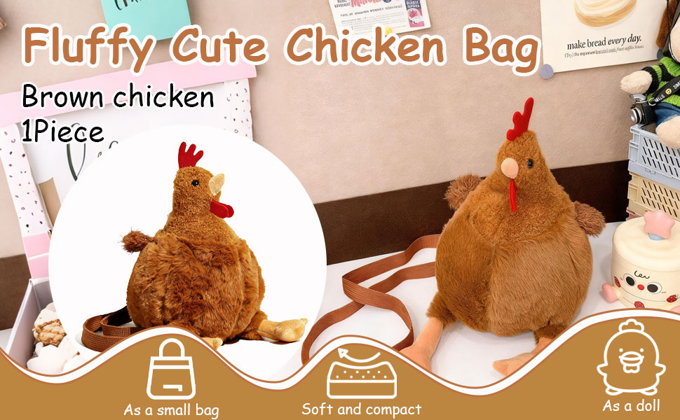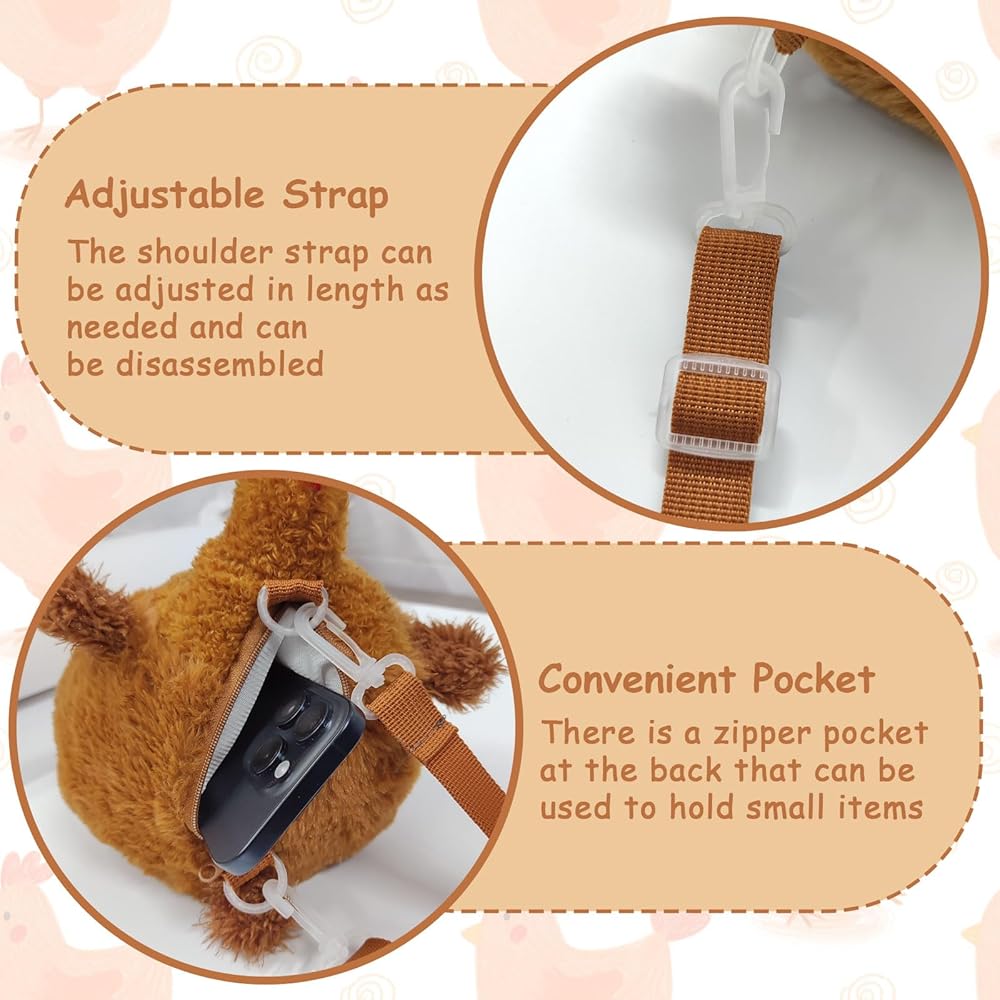 Hikiwin This plush chicken crossbody bag with adjustable strap has a cartoon design, back pocket, is versatile for daily use, and makes a unique gift.