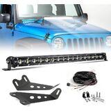 𝐖𝐢𝐝𝐞 𝐕𝐞𝐡𝐢𝐜𝐥𝐞 𝐂𝐨𝐦𝐩𝐚𝐭𝐢𝐛𝐢𝐥𝐢𝐭𝐲 & 𝐒𝐞𝐥𝐞𝐜𝐭𝐢𝐯𝐞 𝐍𝐨-𝐃𝐫𝐢𝐥𝐥 𝐌𝐨𝐮𝐧𝐭𝐢𝐧𝐠: The LED light bar operates on a universal 9–32V DC system, making it compatible with a wide range of vehicles including trucks, SUVs, pickups, ATVs, UTVs, 4x4 vehicles, boats, and work equipment. Vehicle-specific no-drill mounting brackets are included for installation, bolt-on A-pillar or windshield frame brackets designed for JK (2007–2018). Compatibility depends on the bracket used, allowing the same light bar to be installed across different vehicles with the appropriate mounts
