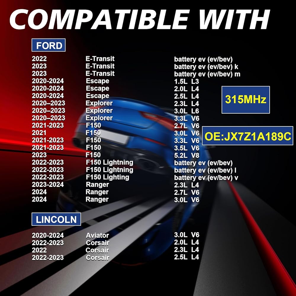 Pre-Programmed Tire Pressure Monitoring Sensor 315MHz TPMS Sensor Compatible with Ford 2020-2024 Escape 2020-2023 Explorer 2021-2023 F150, Ranger, for Lincoln Corsair 4PCS OE-JX7Z1A189C