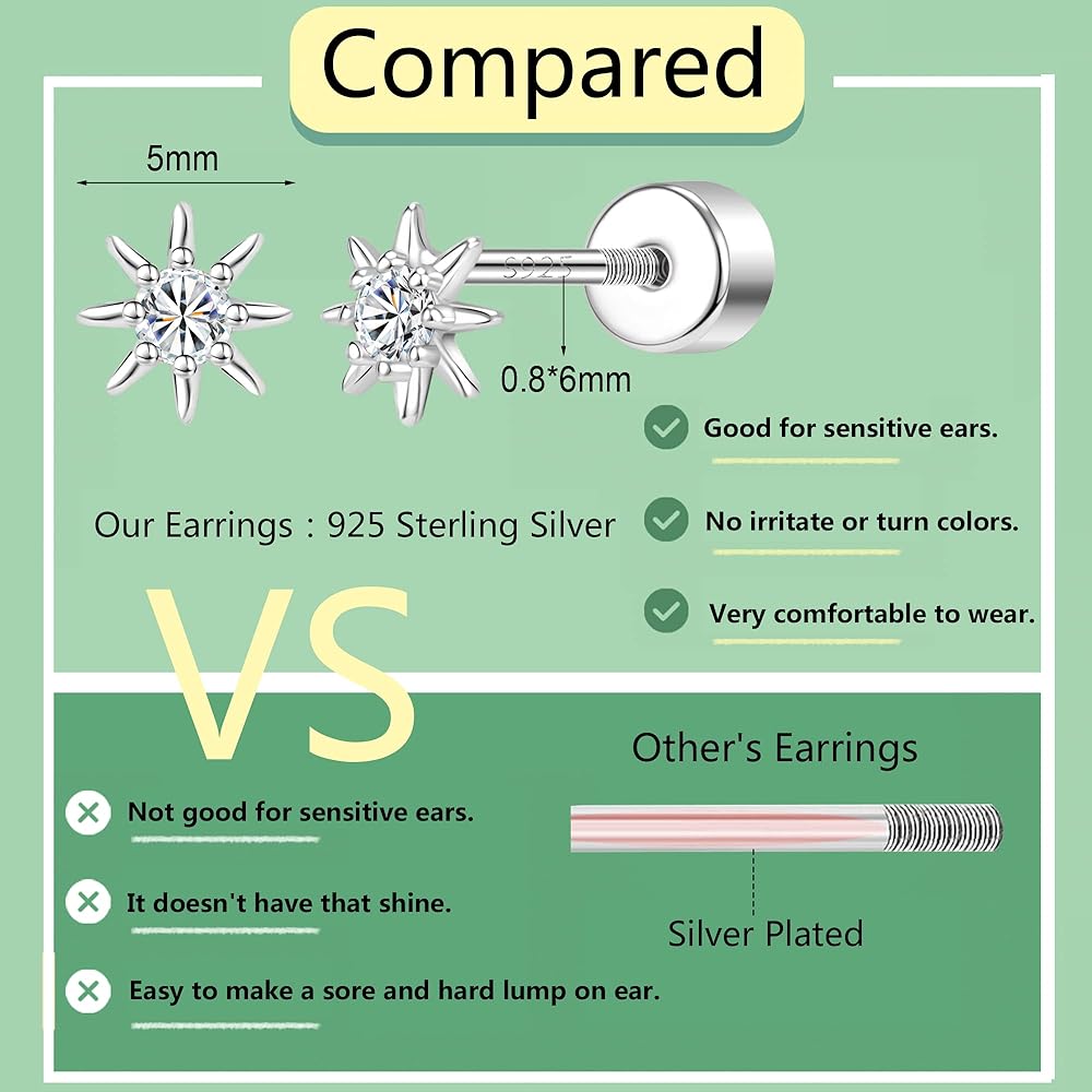 THICKNESS: 20 gauge(0.8mm). this earrings for girls screw back is enough to pass through your earlobes. this sterling silver earrings for girls screw back also can be used as a cartilage earrings, second hole earrings for women.