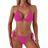Halter Bikini Sets for Women: The triangle bikini top with adjustable neck and back ties for a customised fit. The removable soft pads offer light bust support and comfort.