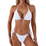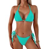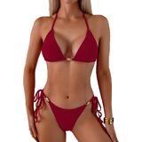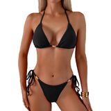Style: Women's Halter Triangle Bikini Sets Sexy Two Piece Swimsuit Gold Metal Side Tie Bathing Suit