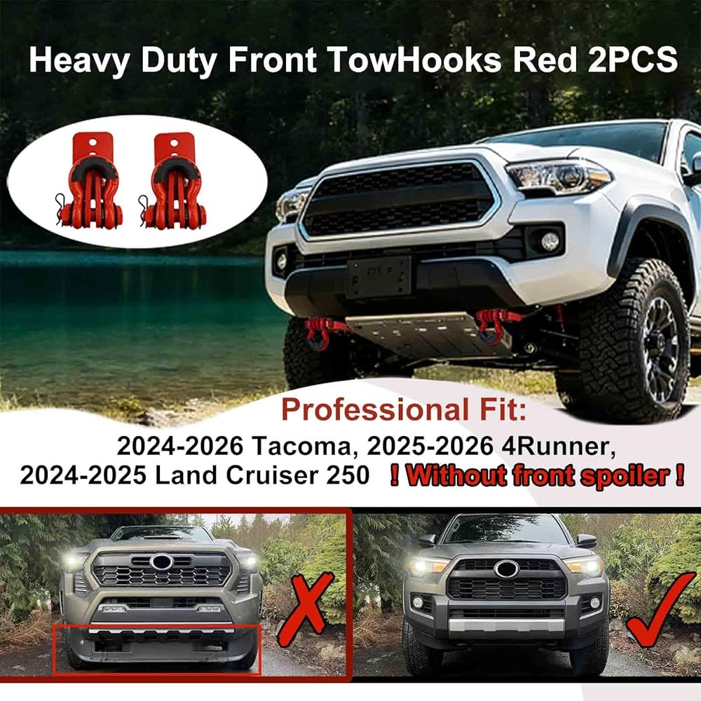 Heavy-Duty Front Tow Hooks, Compatible with Tacoma 2024-2026, 4Runner 2025-2026, and Land Cruiser 250 2024-2025 (Without Front Spoiler), 2-Pack, Flame Red.