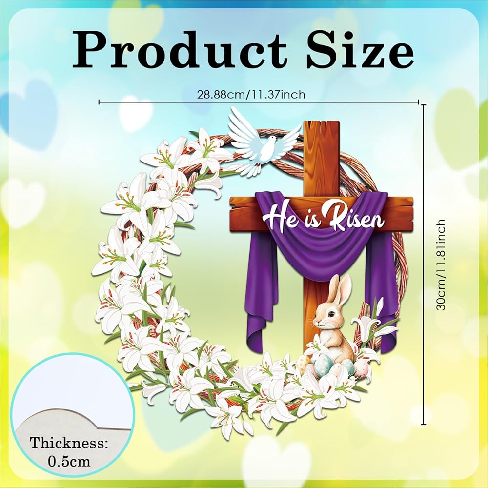 Easter Wooden Door Sign Decoration: Our "He is Risen" Easter wooden door sign measures 12 x 12 inches (approximately 30 x 30 cm). Suitable for various doors, windows, and walls. Designed with classic Easter motifs to highlight the Easter theme
