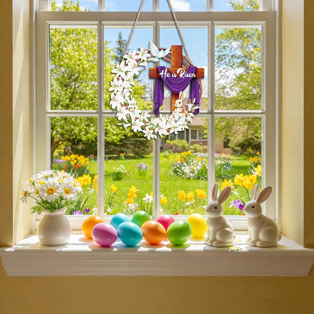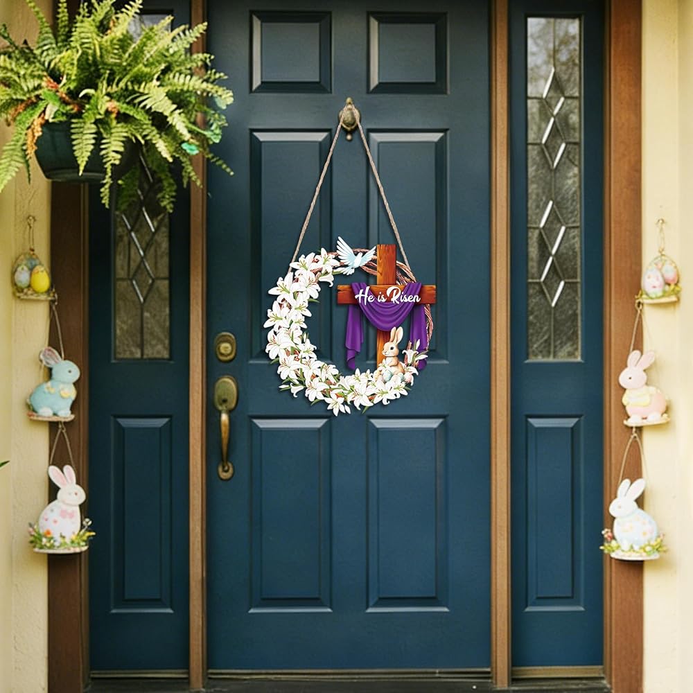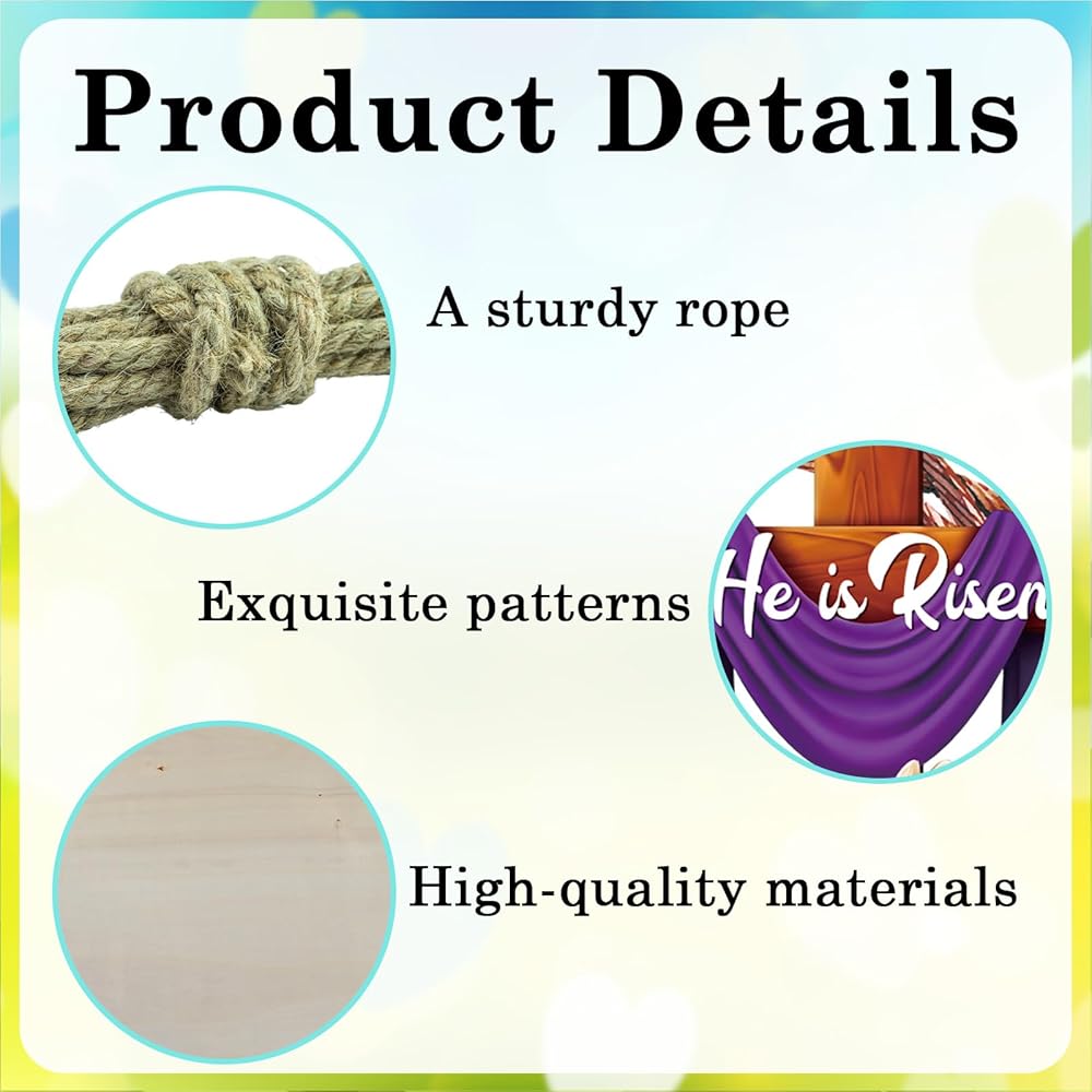 Durable Material: This religious Easter wooden door sign is made of high-quality wood, durable and suitable for all seasons. The package includes a sturdy rope for easy hanging. Simply thread the rope through the two holes on the front of the door sign and tie a knot on the back. To extend its lifespan, avoid direct sunlight and rain. If used outdoors, it is recommended to hang it on a covered porch