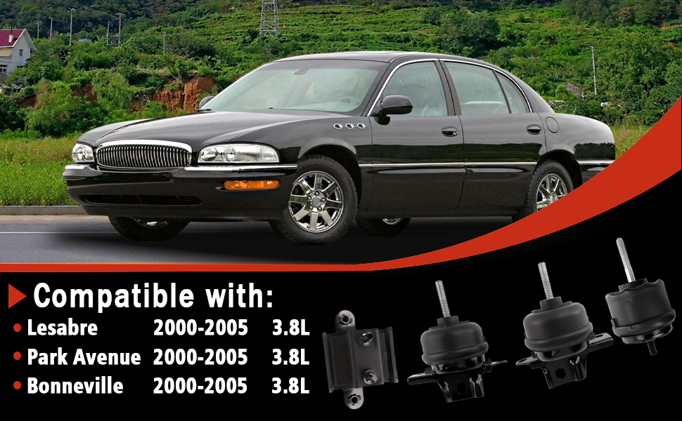 Compatible vehicle: 2000 Lesabre 3.8L engine mount 2001 Lesabre 3.8L engine mount 2002 Lesabre 3.8L engine mount 2003 Lesabre 3.8L engine mount 2004 Lesabre 3.8L engine mount 2005 Lesabre 3.8L engine mount 2000 Park Avenue 3.8L engine mount 2001 Park Avenue 3.8L engine mount 2002 Park Avenue 3.8L engine mount 2003 Park Avenue 3.8L engine mount 2004 Park Avenue 3.8L engine mount 2005 Park Avenue 3.8L engine mount 2000 Pontiac Bonneville 3.8L engine mount 2001 Pontiac Bonneville 3.8L engine mount 2002 Pontiac Bonneville 3.8L engine mount 2003 Pontiac Bonneville 3.8L engine mount 2004 Pontiac Bonneville 3.8L engine mount 2005 Pontiac Bonneville 3.8L engine mount