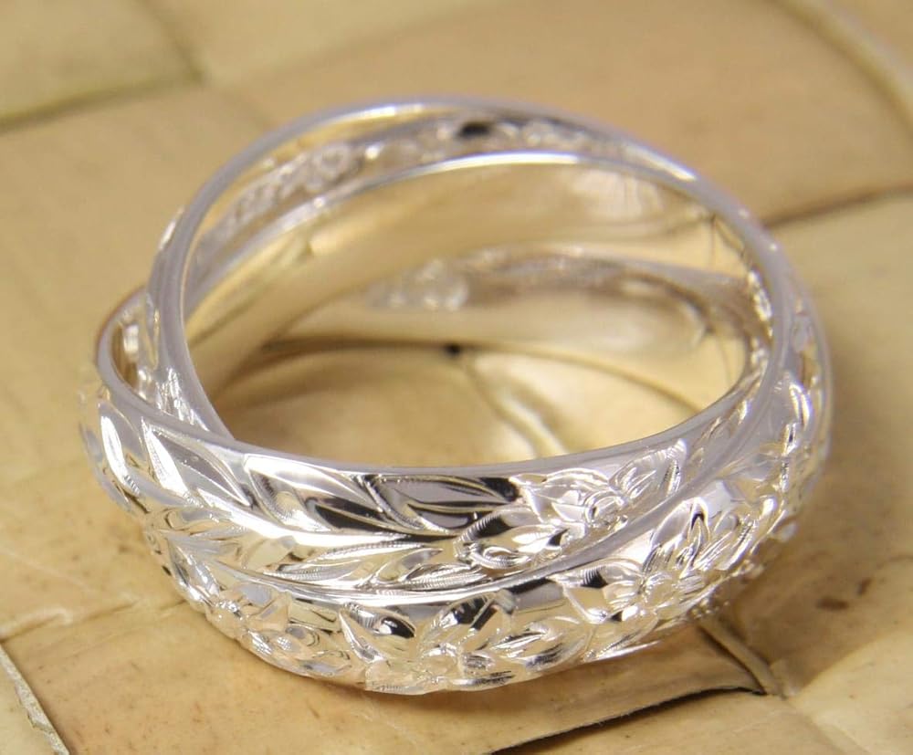 925 sterling silver 3 in 1 Hawaiian scroll plumeria maile leaf ring size 3-10
