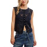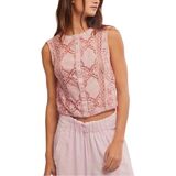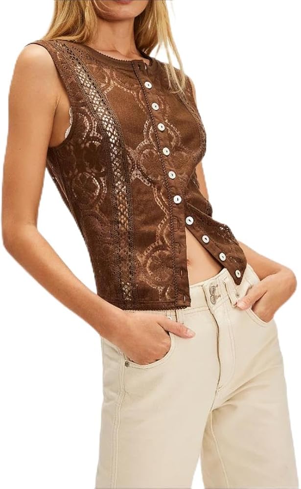 Features: Women summer boho lace sleeveless crew neck cropped shirts, floral eyelet semi sheer tank tops, y2k vintage aesthetic hollow out going out vest tops, button down closure, relaxed fit, casual solid color plain embroidery patchwork vacation clothes