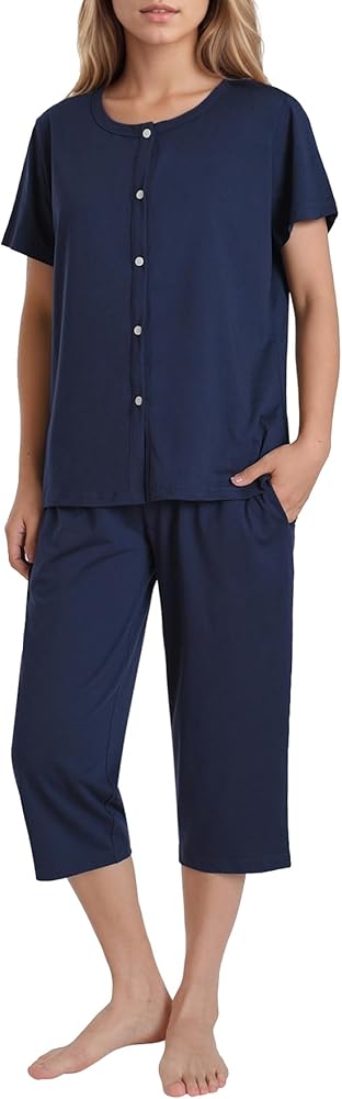 - Petite Capri Pajamas: Button down pj top paired with petite capri pajama pants offers both coolness and convenience