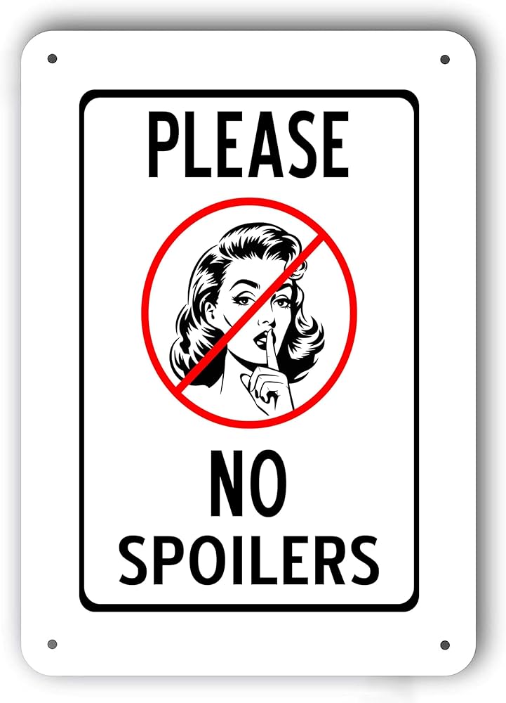Funny Metal Sign - PLEASE NO SPOILERS - White Aluminum