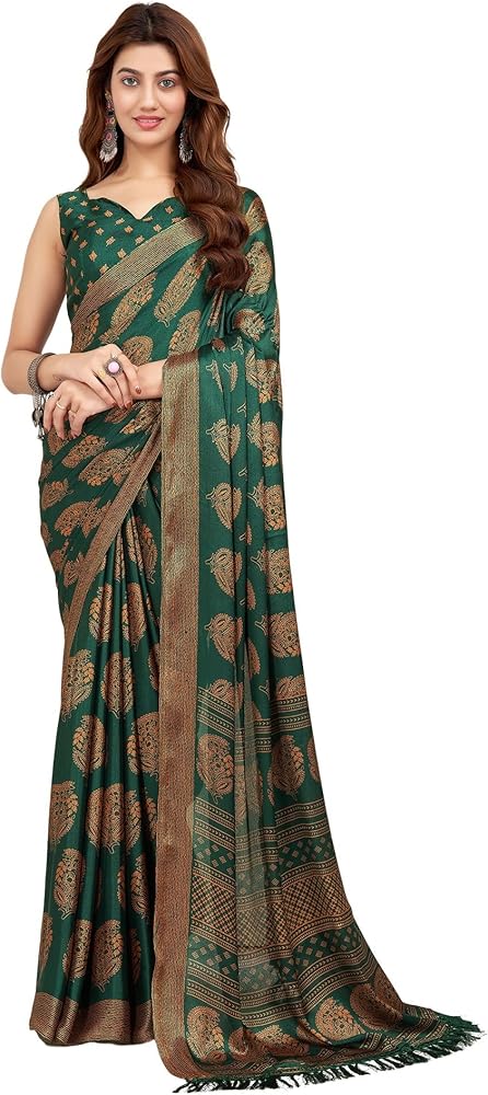 Women's Satin Georgette Printed Saree With Unstitched Blouse Piece