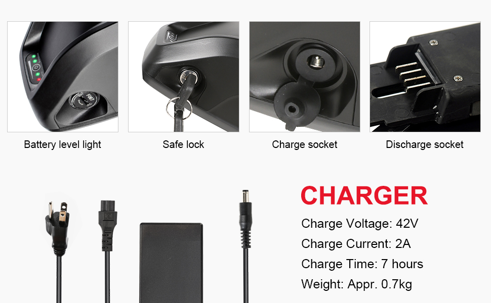 【QUICK CHARGE, LONG RIDE】 The included smart charger charges the battery to full capacity in just 7 hours, providing you with hours of uninterrupted e-bike adventures. Get ready for quick charging and long rides with Yose Power's 36V ebike battery.