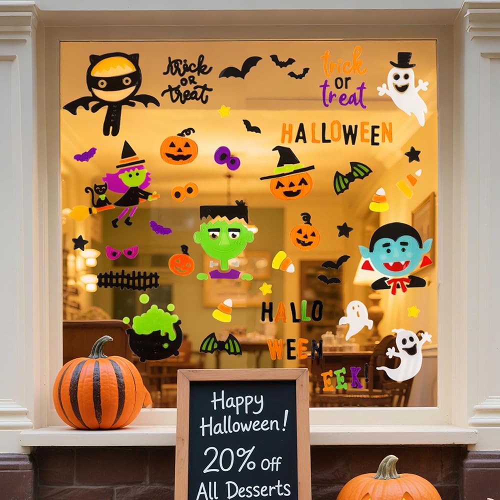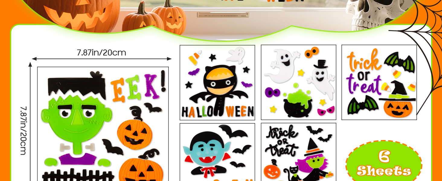 Removable and Reusable Gel Window Clings:Halloween Thick Gel Window Stickers are easy to remove and use for long periods of time. You can always remove these thick gel stickers and reuse them manually.