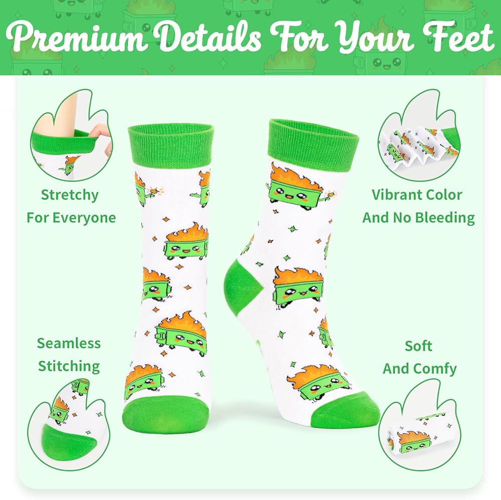 The Ultimate Relatable Gift For Any Occasion: Universally appealing for birthdays, holidays, or White Elephant parties, these dumpster fire socks make a memorable and humorous present; Great for gifting to colleagues, friends, or bosses, they spark conversations and show you understand the struggles of modern life