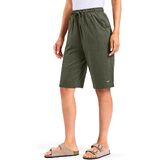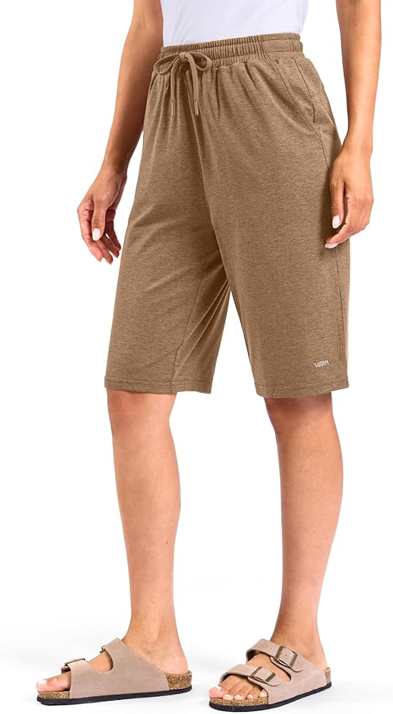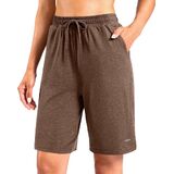 ELASTIC WAIST WITH DRAWSTRING: Women's knee length shorts with elastic waistband and drawcord for a custom fit. Convenient two pockets are deep enough for a phone and other lounging essentials