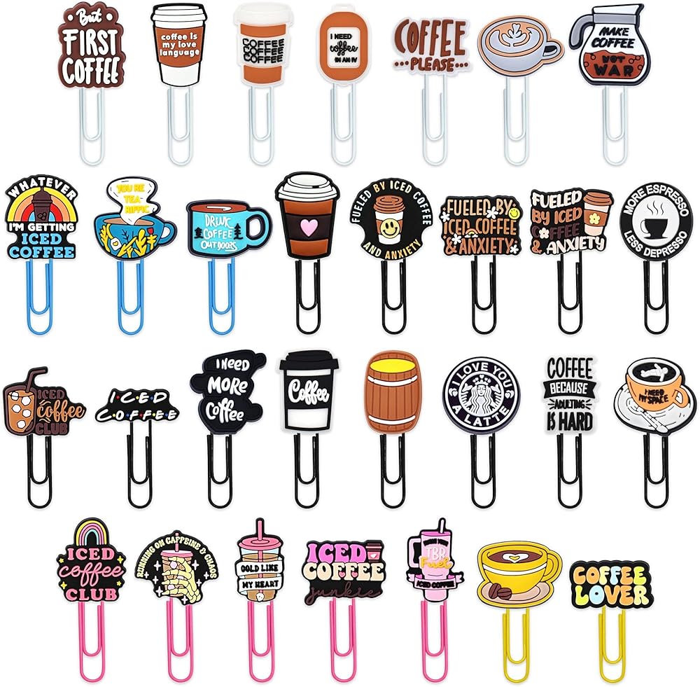 Coffee Paper Clips for Coffee Themed Party Fvaor Fun Cute Paperclips Bookmarks Large Planner Clips Bookmark Clips Office Worker Coworker Teachers Gifts